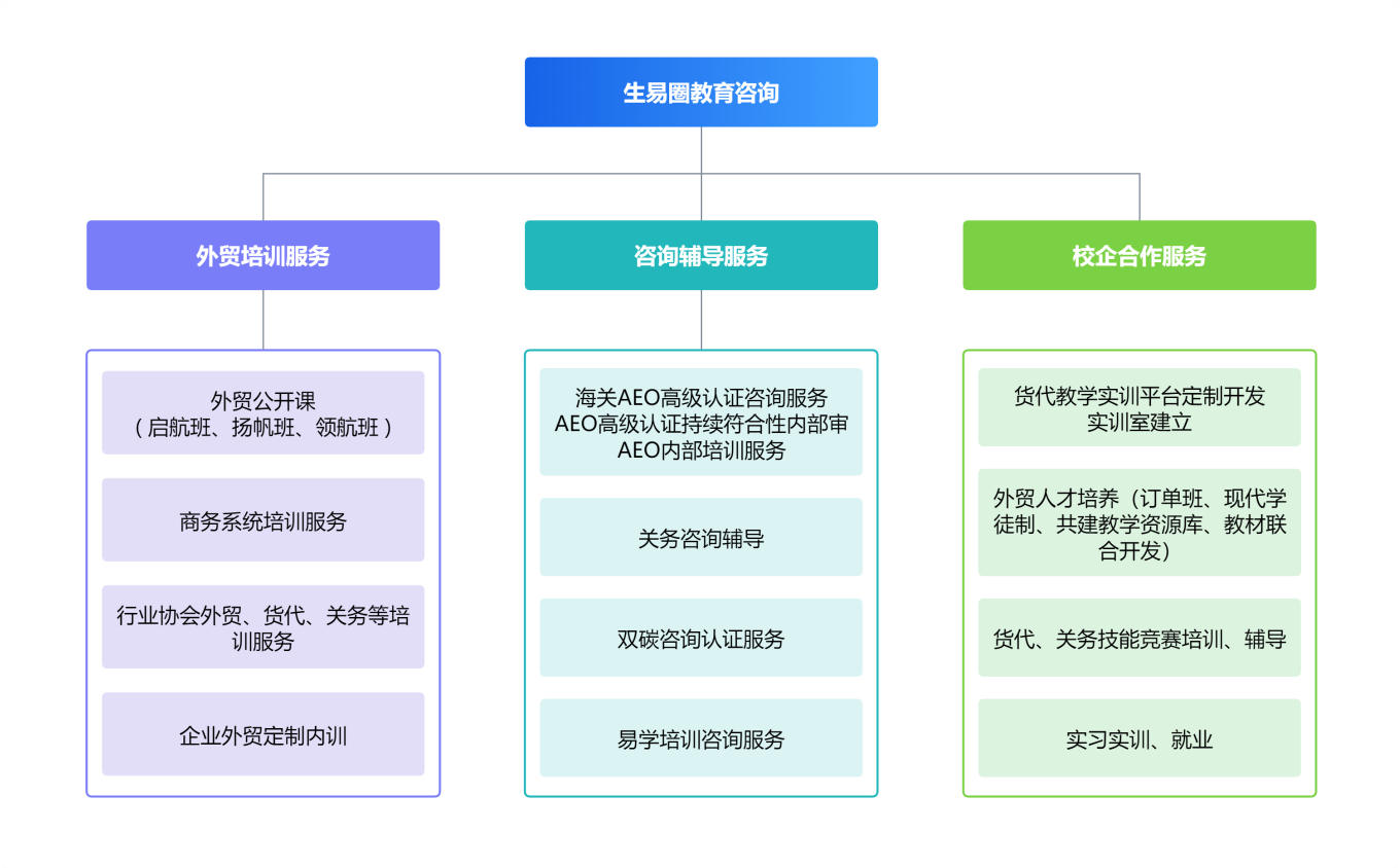 公司結合國際供應鏈外貿綜合服務及人才優(yōu)勢,立足外向型企業人才需求,成立湖南生易圈教育咨詢有限公司。